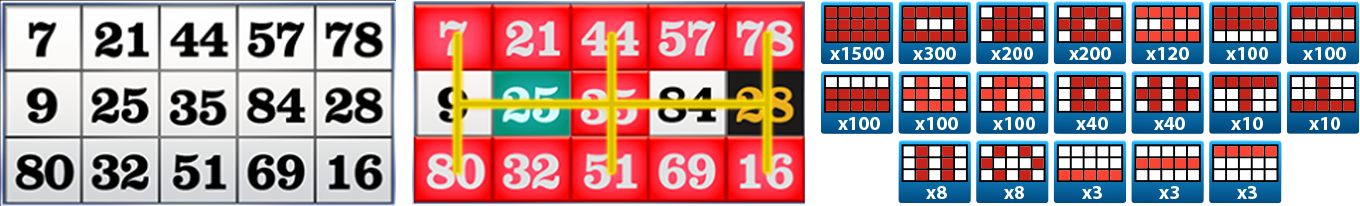 - Payout is issued whenever player completes any predefined prize pattern.